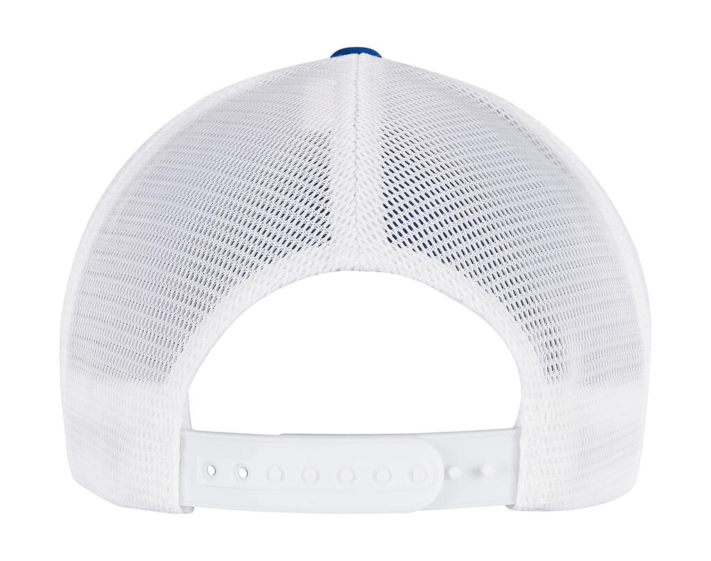 ·55% polyester, 43% katoen, 2% elastaan ·Mesh panelen: 100% polyester in contrasterende kleur ·6 panelen ·Harde bokram ·Piek met 8 rijen stiksels ·Ondervizier in contrastkleur (wit) ·Gepatenteerde permacurve piek ·Snapback maatversteller.