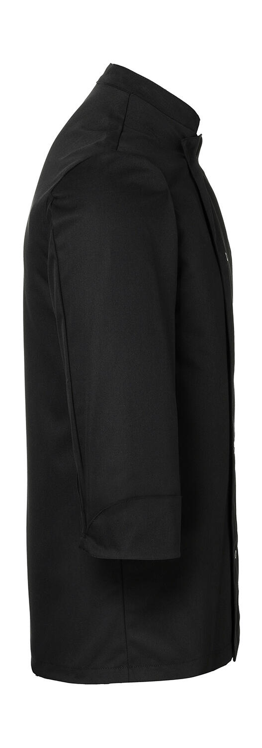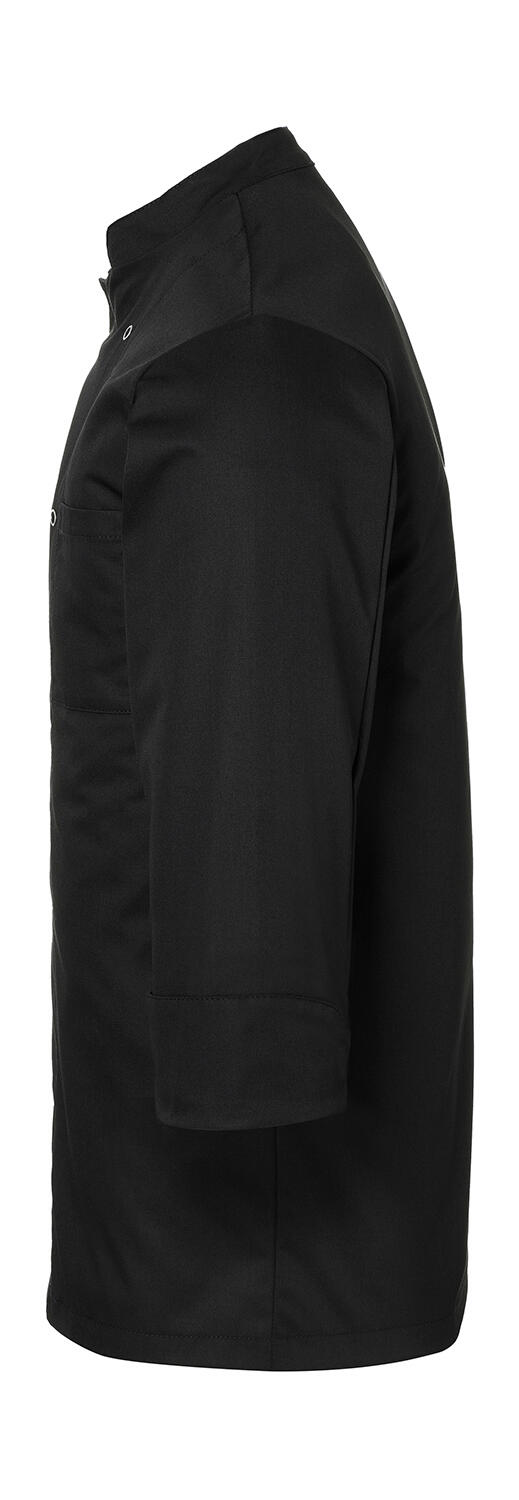 ·215 g/m² ·65% polyester, 35% katoen ·Unisex met normale pasvorm ·Linkerborstzak ·Armmanchetten met splitje ·10 dubbele rij knopen jas met 10 drukknopen ·Wasbaar tot op 60°C