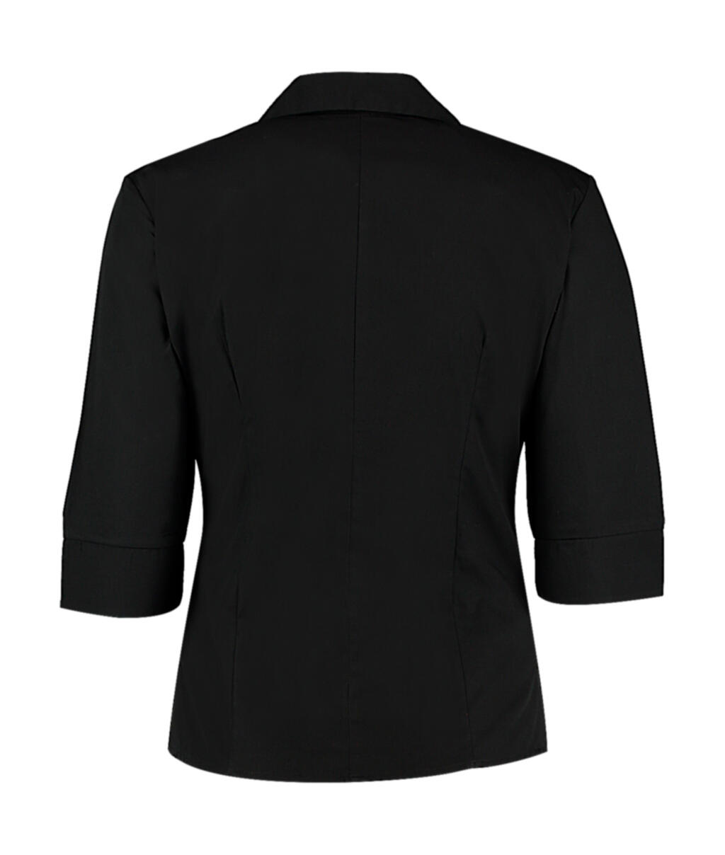·115 g/m² ·65% polyester, 35% katoen ·3/4 mouwen ·armafwerking met splitjes ·verdekte knoopsluiting ·getailleerd model ·makkelijk strijkbaar ·afgeronde zoom ·split op de rug dus niet te bedrukken op rugpand.