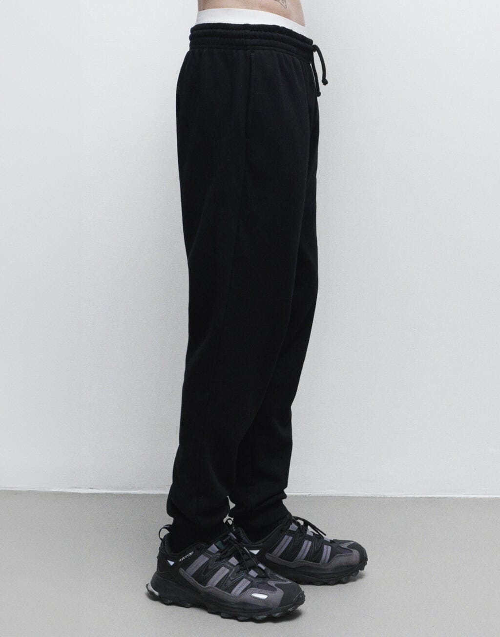 ·Enkeldraads gestikt en dubbeldraads bij de tailleband