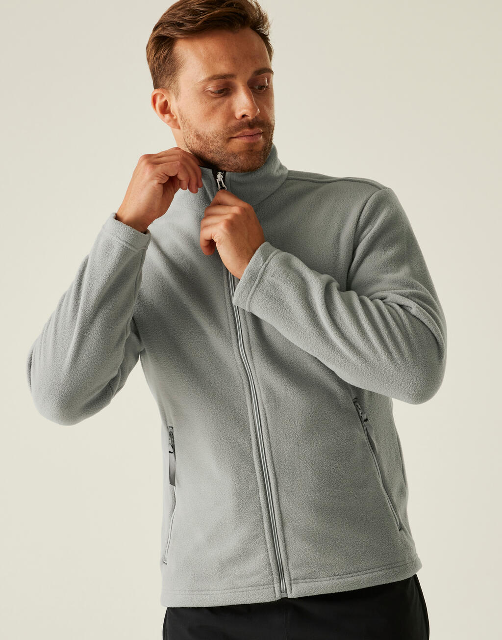 ·250 g/m² ·100% polyester (gerecycled) ·Geborstelde fleece aan de binnenkant ·Zacht aanvoelend en sneldrogend ·Volledige ritssluiting ·Zijzakken met ritssluiting