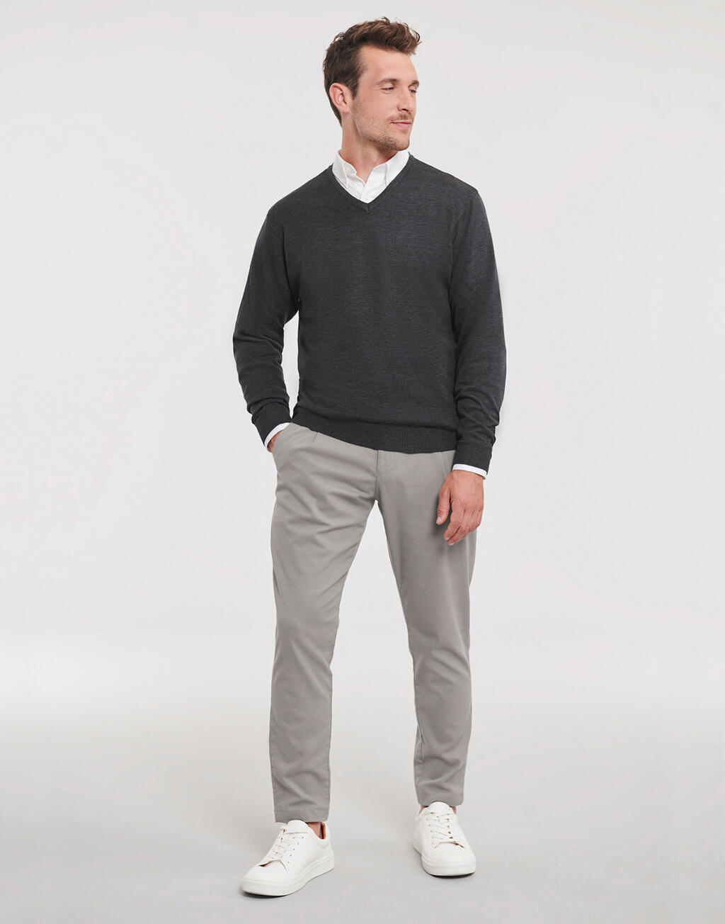 ·275 g/m² ·50% Katoen, 50% Acryl ·Easy care CottonBlend™ stof ·klassieke gladgebreide Pullover met V-hals ·gebreide manchetten en boord met elastan ·ideaal om borduren ·machine wasbaar tot 40°C.