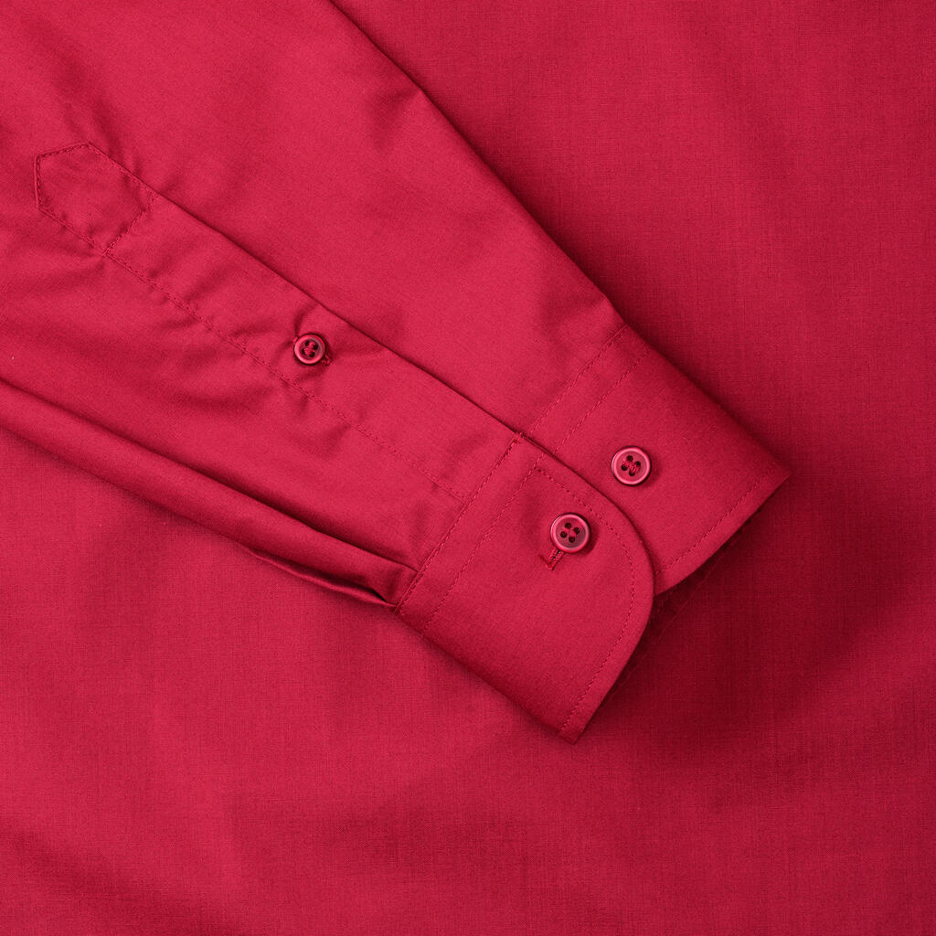 ·afgeronde verstelbare manchetten met 2 knoopjes, 1 reserveknoopje op de manchet