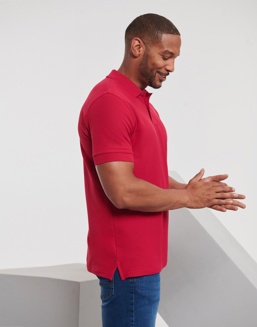 ·215 g/m² (White 210 g/m²) ·100% gekamd ringgesponnen katoen ·ribgebreide kraag en manchetten ·visgraatnekband ·knoopsluiting met 3 gelijkgekleurde knopen (één reserveknoop) ·voorzien van zijnaden ·dubbelgestikt aan de onderboord ·Versterkte zijsplitjes ·Voorgelrompen, wasbaar tot 60°C
