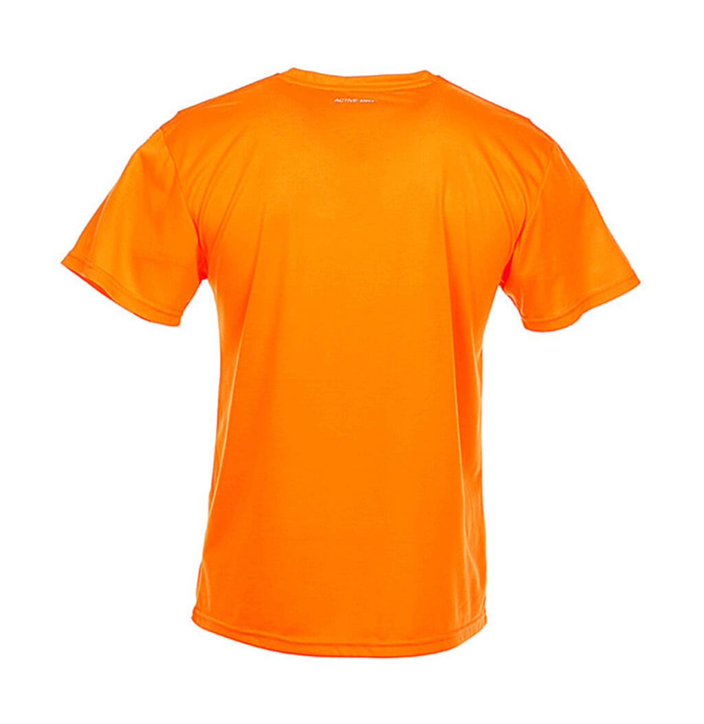 ·160 g/m² ·100% polyester (single jersey “voelt aan als katoen”, ACTIVE-DRY°) ·Fijne, zachte stof dat als katoen aanvoelt ·Decoratieve platte schoudernaden ·Smalle reflecterende ACTIVE-DRY° logo op de rug ·Zijnaden ·Normale pasvorm