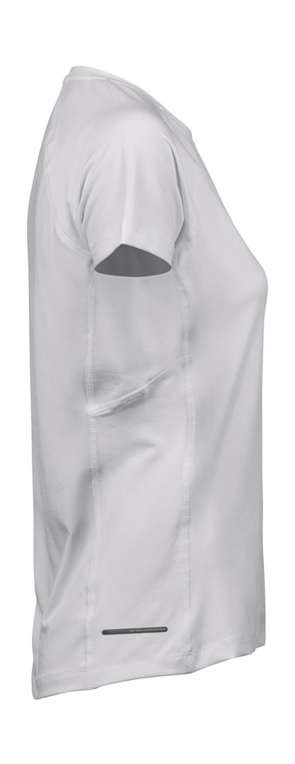 ·160 g/m² ·95% polyester (COOLdry stof), 5% elastan ·Zacht en lichgewicht stof ·Ademend ·Sneldrogend en zweetafstotend ·Siersteken ·Reflecterende druk ·Sportieve pasvorm