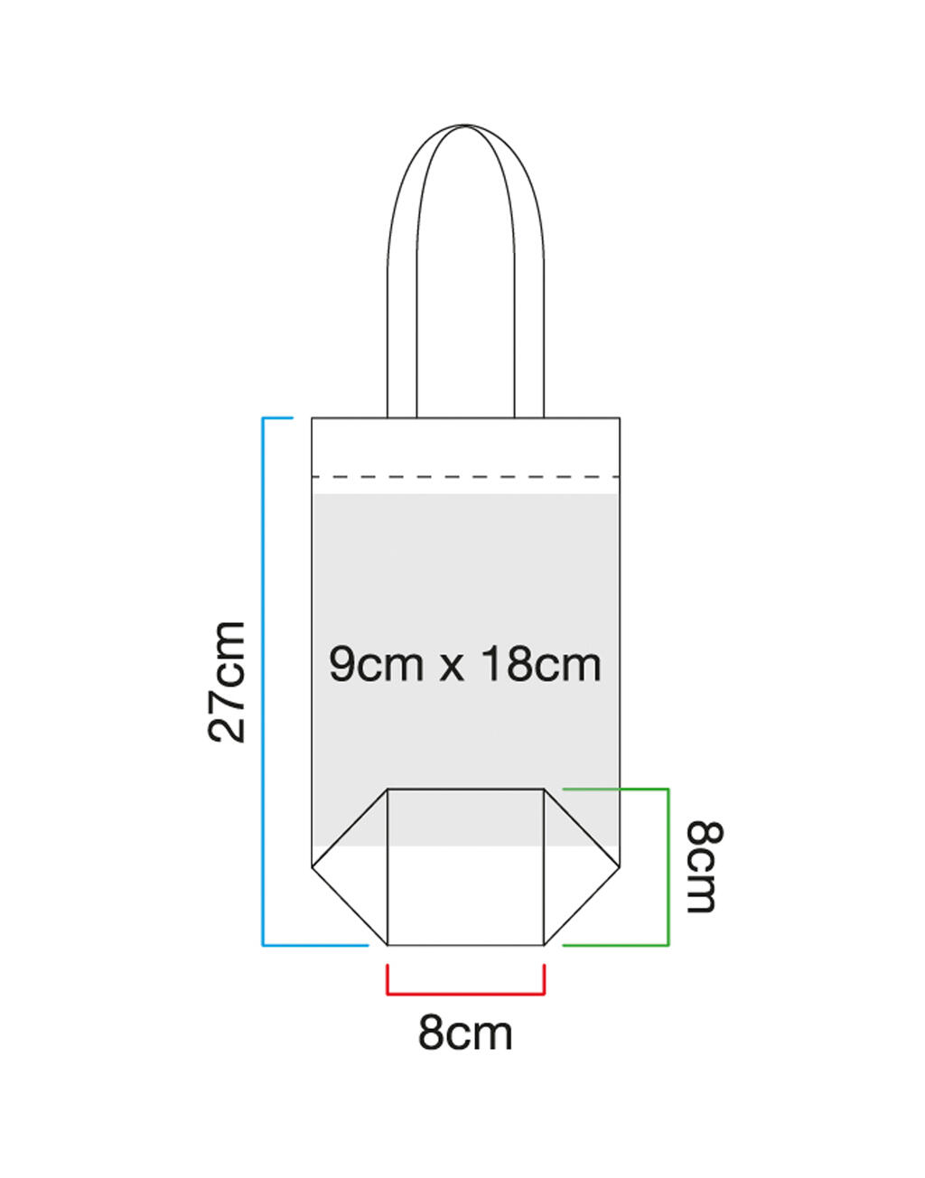 ·407 g/m² ·100% katoen (canvas) ·Handvat lengte: 30 cm ·Ruimte voor een 1,5 liter fles ·Capaciteit: 2 liter ·Afmetingen: 8 x 27 x 8 cm ·Ruimte voor decoratie: 13 x 18 cm.