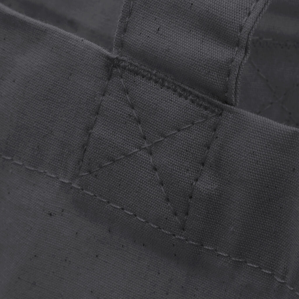 ·200 g/m² ·100% katoen ·Hengsel lengte: 67 cm ·Kan met de hand of over de schouder worden gedragen ·Capaciteit: 10 liter ·Afmetingen: 38 x 42 cm ·Max. borduurwerk: 18 ronde hoepel ·Gebied voor decoratie: 33 x 36 cm.